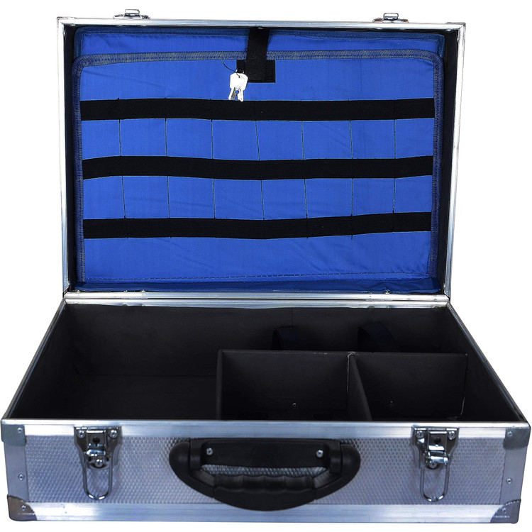 دستگیره این کیف برای راحتی و سهولت استفاده؛ جایگاه انگشت دارد. دو قفلی که بر روی کیف تعبیه شدهاند؛ با کلید باز میشوند. ارتفاع این کیف 18/5، طول آن 48 و عرض آن 34/5 سانتیمتر میباشد.